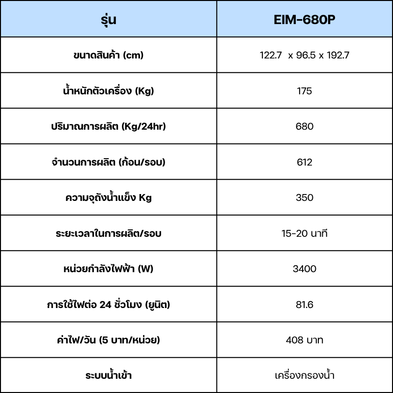 กำลังผลิต 680 kg ต่อวัน วัสดุสแตนเลส